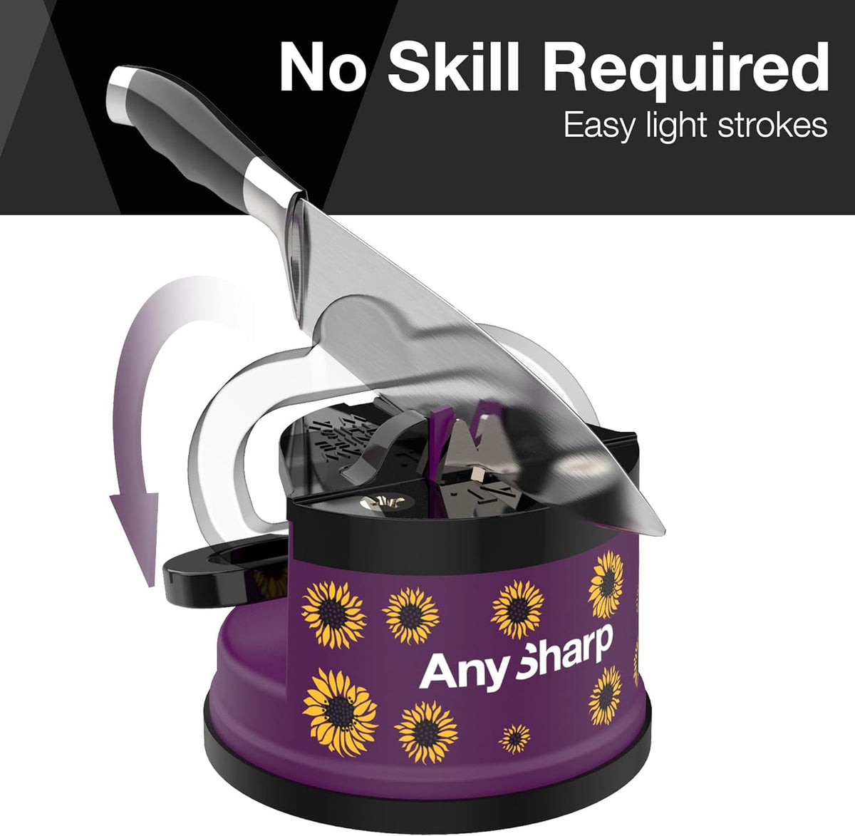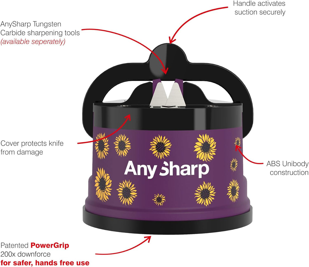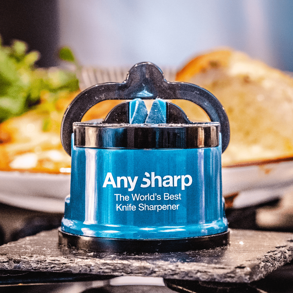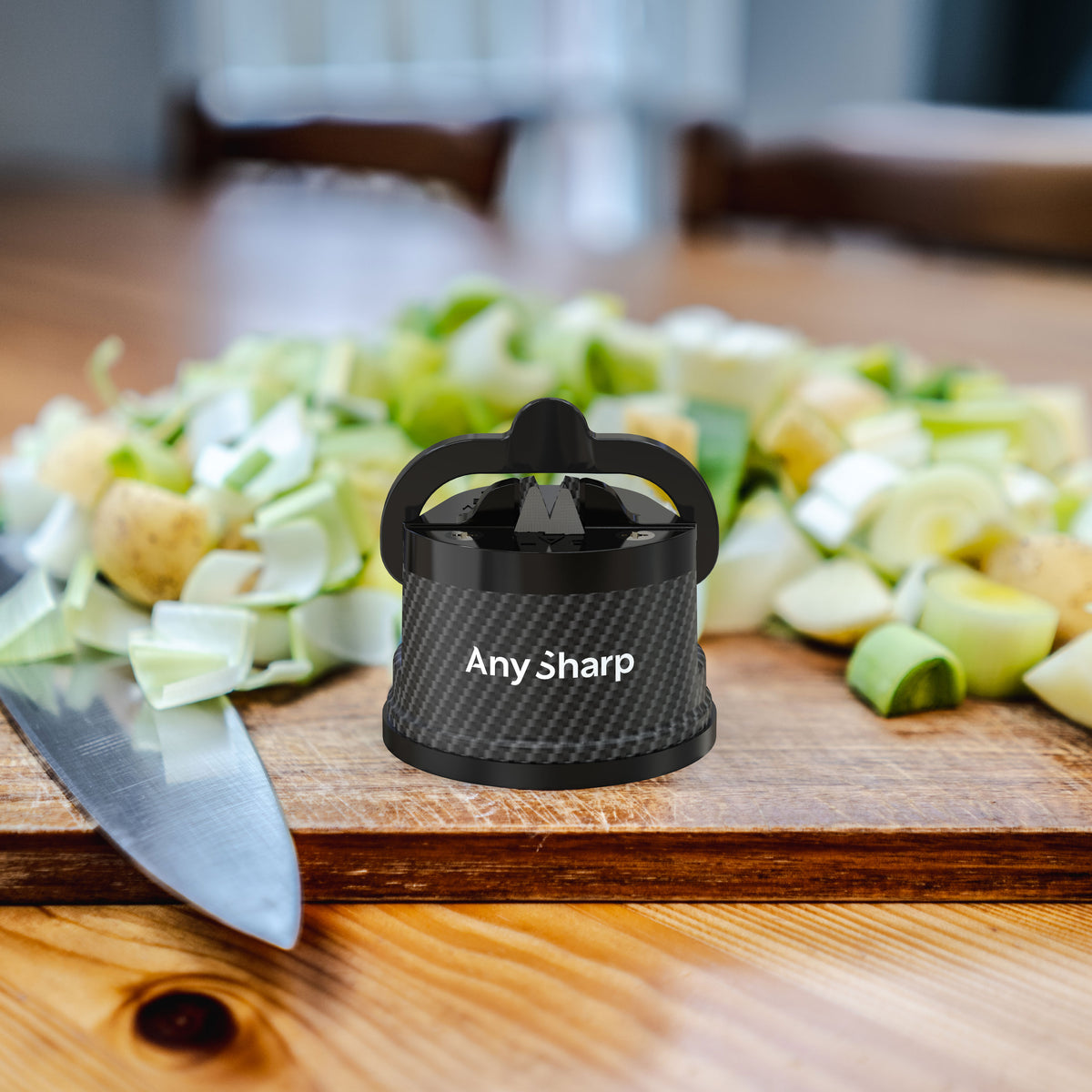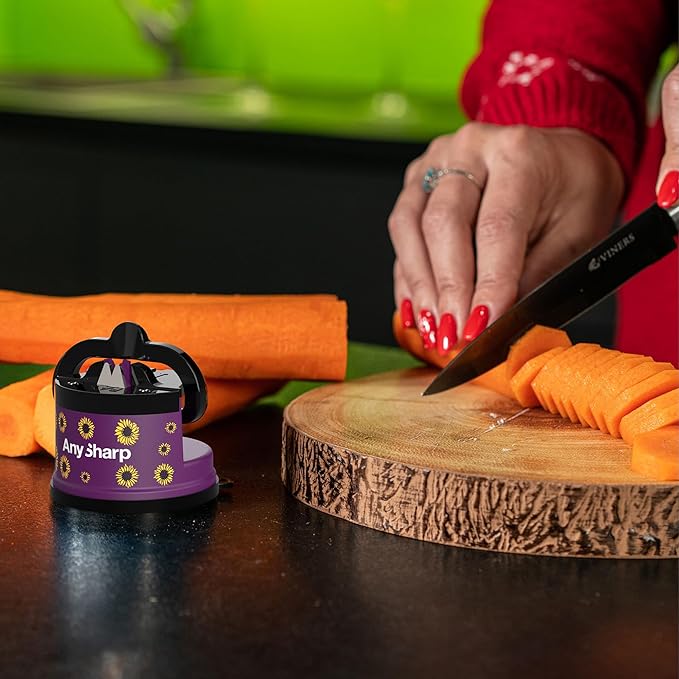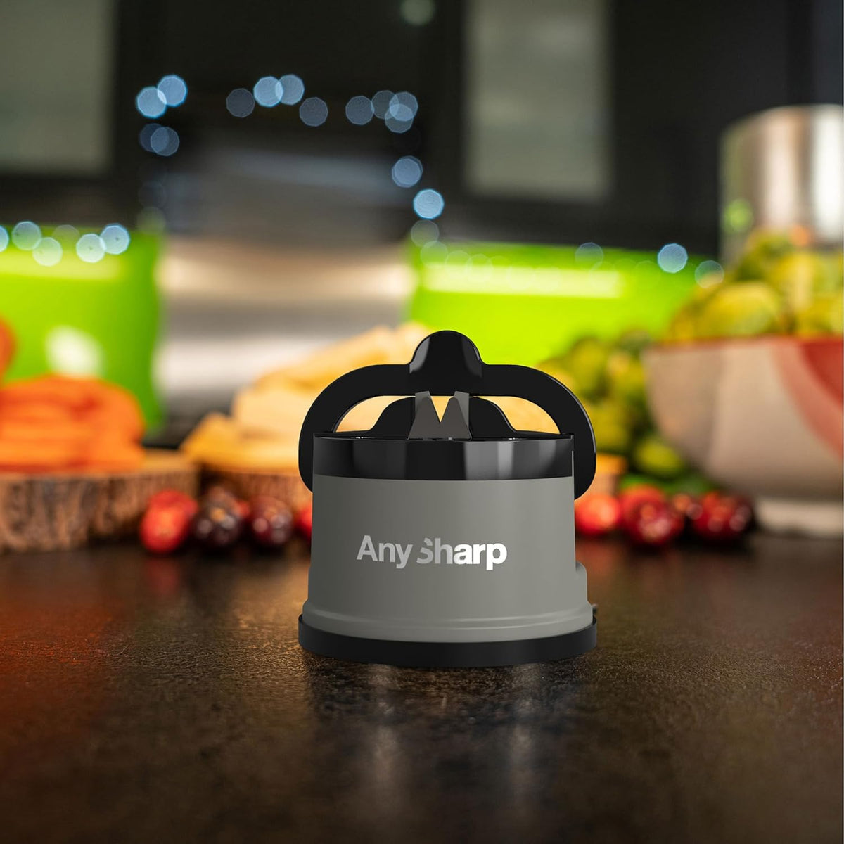 Known as the “World’s Best Knife Sharpener,” AnySharp Editions Knife Sharpener rejuvenates knives safely and hands-free. A few light strokes, and in seconds, the knife is sharp as new. The patented Power Grip suction cup base keeps the sharpener in place and the advanced diamond-honed Tungsten Carbide blades easily sharpen almost any knife. Professional-grade knife sharpening that helps make cooking easy and safe!